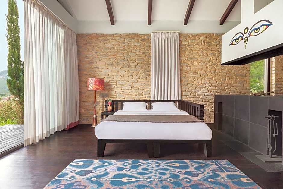 This double room features a fireplace, kitchenette and a private terrace with mountain view.